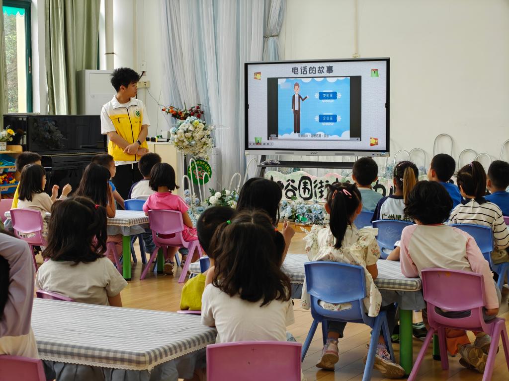 团委携手小谷围街中心幼儿园开展本学期首期科学公开课,为30余名小朋友带来“土电话”的主题课堂,让科学知识在趣味互动中浸润童心。