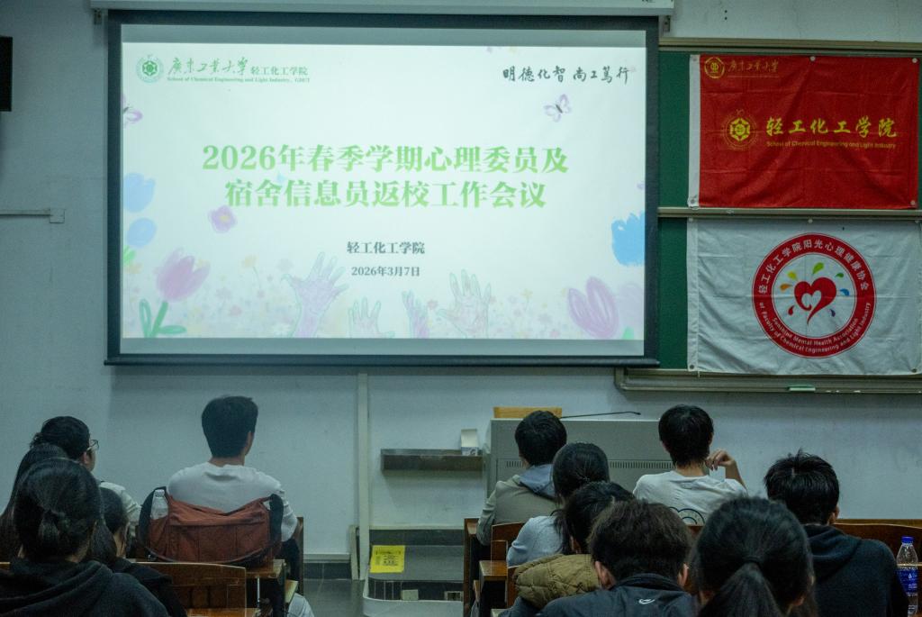 于3月7日晚在教三104召开2026年春季新学期心理委员及宿舍信息员返校工作会议。学校心理健康教育与咨询中心老师吴洁、学院心理健康工作指导老师冯浩宸及全体心理委员、宿舍信息员参加本次会议。